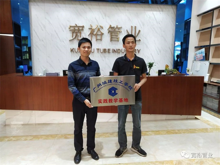 为了响应国家加强企业和学校合作的号召,充分发挥校企合作的优势,更好的为社会和企业培养高素质、高技能的应用型人才,同时也为广大学生实训、实习、就业提供更多空间,宽裕管业与广州城建技工学校校企合作签约授牌仪式于2019年10月30日下午五点在佛山宽裕半岛.体育总部郑重举行。