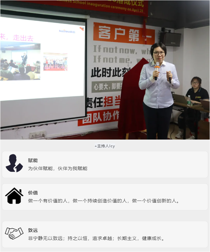 在本次揭牌仪式中,主持人Icy为大家隆重介绍了到场的嘉宾及宽裕商学院的基本情况。