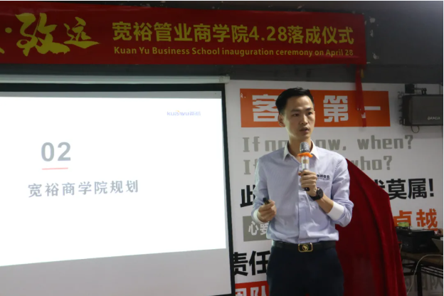 揭牌仪式中,宽裕管业总经理黄宽铭先生对商学院的规划进行了介绍,并说道:宽裕成立于2010年,基本上最早的一批人都是“草根”,但是我们又有一颗不平凡的心,不平凡的梦,这就是我们打造管裕商学院一个非常重要的原因,只有我们宽裕人持续学习,持续提升,才能去完成我们伟大的愿景,我们要成为一家世界级半岛.体育全链制造与服务提供商,这对于宽裕人的品质要求是非常高的,把社会上好的东西带进我们公司,在这个过程中,我们也会邀请各个行业的大咖过来分享。相信我们不断持续学习,未来必定会在行业内有一定的影响力。商学院的建设任重道远,我是第一届院长,希望未来有更多的院长,带领宽裕人不断进步不断成长,培养出一批又一批独特的宽裕人才,相信未来的宽裕人才济济。